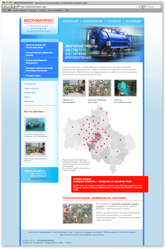 Компания предлагает комплексное обслуживание систем канализации, водоснабжения, отопления и вентиляции на предприятиях, в загородных домах, коттеджах, квартирах, объектах промышленности и ЖКХ Московского региона.